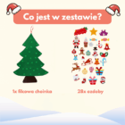 Wszystko, czego potrzebujesz, jest w zestawie. Otrzymasz 28 kolorowych ozdób z filcu. Ozdoby mocują się na rzepy (Velcro), co pozwala na wielokrotne dekorowanie bez frustracji.
