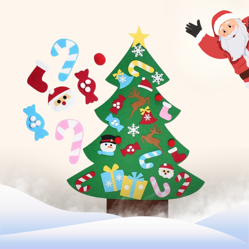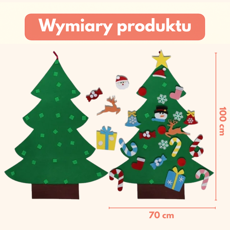 Filcowa choinka daje maluchowi własną przestrzeń do dekorowania, a Tobie oszczędza stres i sprzątanie.🎄
